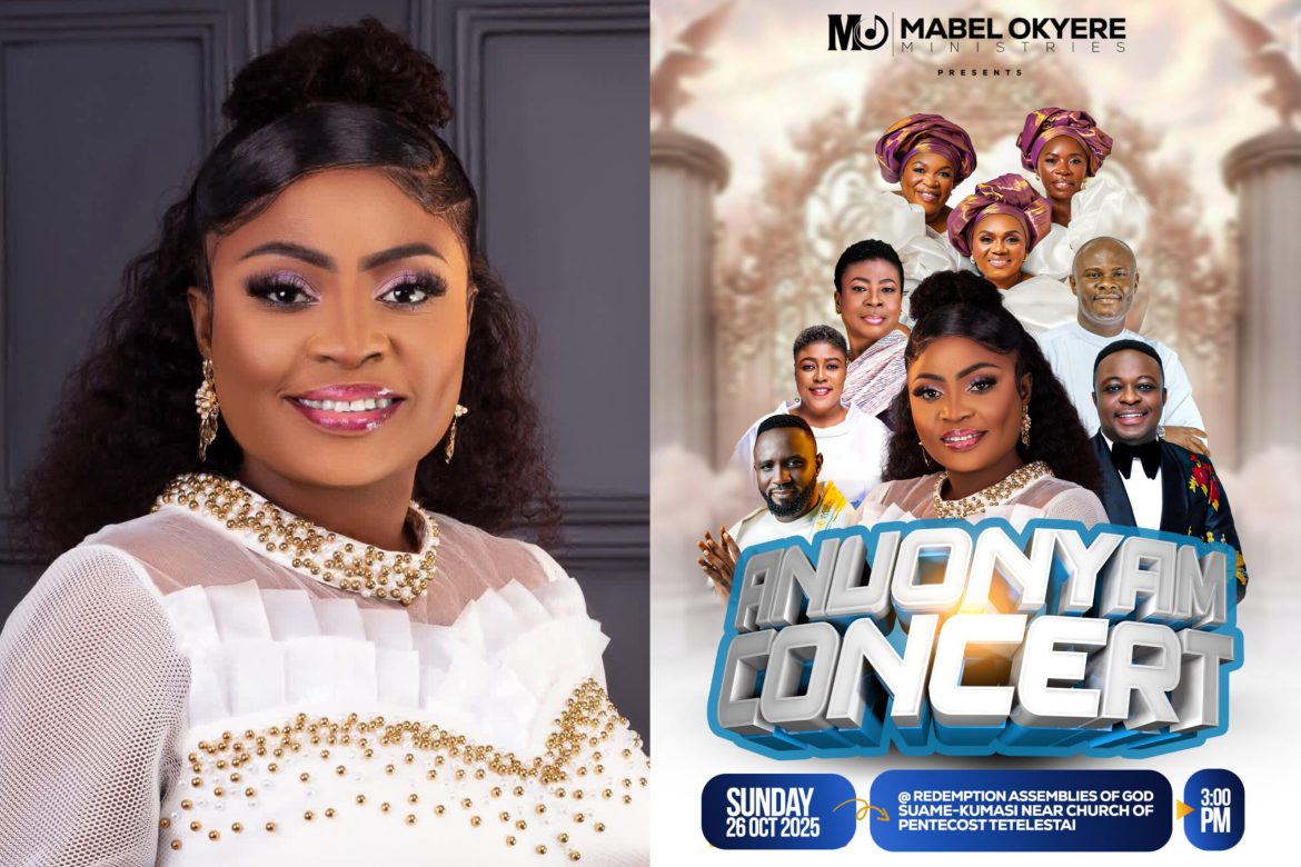Mabel Okyere Ministries is excited to announce the second edition of the much-anticipated Anuonyam Concert, scheduled for Sunday, October 26, 2025, at the Redemption Assemblies of God, Suame-Kumasi (near Church of Pentecost Tetelestai). The event kicks off promptly at 3:00 PM.