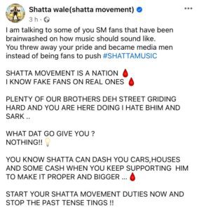 According to the president of Shatta Movement, when his fans stay focused on him and his music, he would not be compared to other artistes by their fan bases.