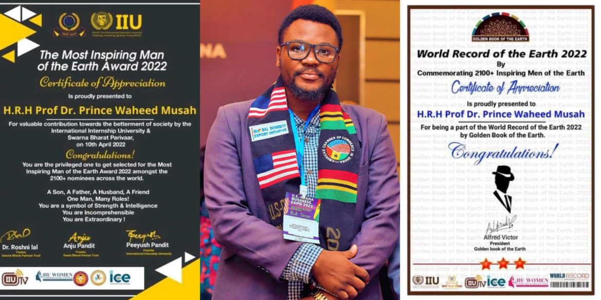 In a landmark event celebrating global leadership and achievement, Dr. Prince Waheed Musah has been honored with the prestigious title of “THE MOST INSPIRING MAN OF THE EARTH” for 2022. This accolade, recorded in the Golden Book of the Earth by the International Internship University (IIU), marks Dr. Musah as the first Ghanaian and the youngest individual ever to receive this esteemed recognition.